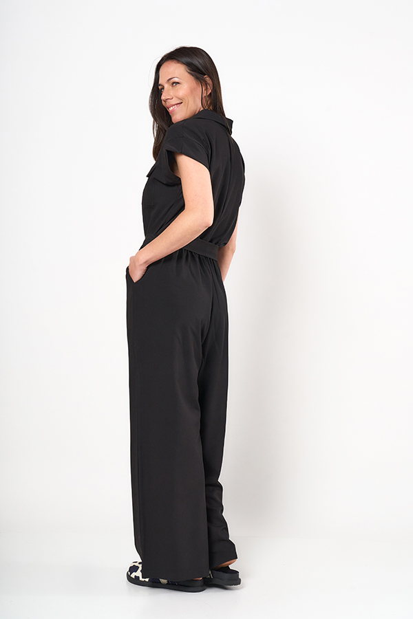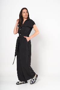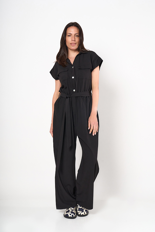 MONO NATASHA. CUELLO SOLAPA CON CARTERA Y MANGA JAPONESA, FRENTE RECORTE CON BOLSILLOS TAPITA, DETALLE CINTURA CON ELASTICO, LAZO Y BOLSILLOS LATERALES. TEJIDO ZARA SASTRERO LISO.