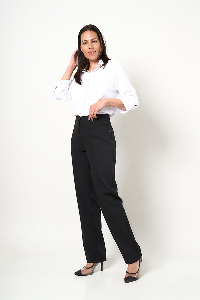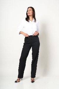 PANTALON MARIAH.CINTURA ANCHA, DETALLE SIMULA BOLSILLOS LATERALES PESTAÑA CON BOTONES. TEJIDO ZARA SASTRERO LISO.