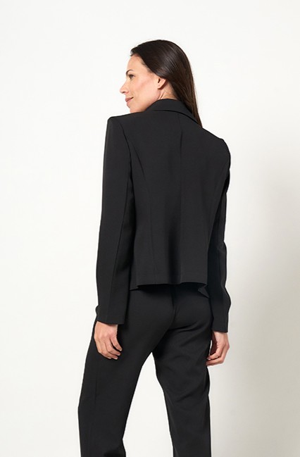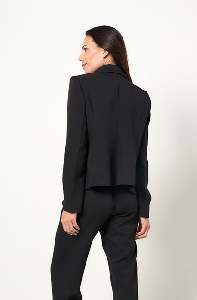 BLAZER BRITNEY CORTO. CUELLO SOLAPA Y MANGA LARGA, RECORTE ENTALLADO CON BOLSILLOS OJAL. TEJIDO ZARA SASTRERO LISO.