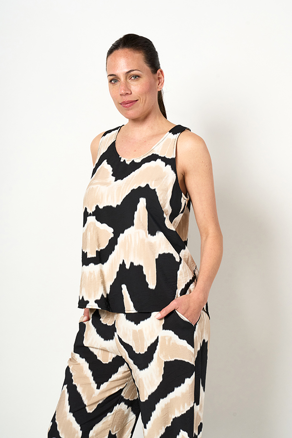 MUSCULOSA CAROLA EVASEE. ESCOTE U, TEJIDO VISCOSA ESTAMPADA.