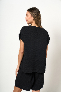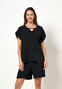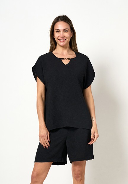 BLUSA KAYA. ESCOTE BASE RECORTE LAGRIMA CON ACCESORIO Y MANGA JAPONESA.TEJIDO CEY VINTAGE LISO.