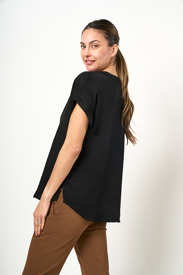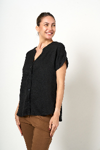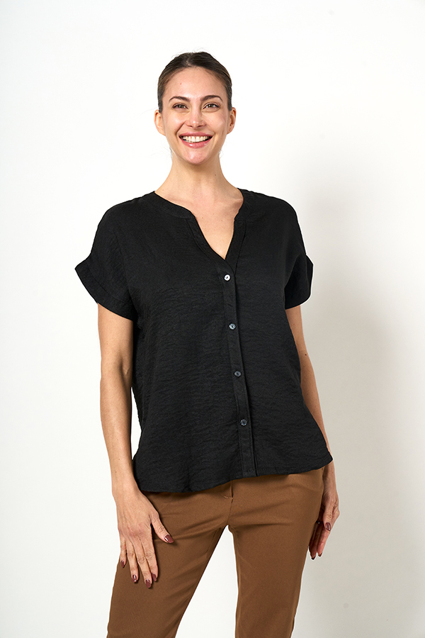 BLUSA NICOLE. ESCOTE FANTASIA INCLINADO CON MANGA JAPONESA. TEJIDO TWILL LISO.