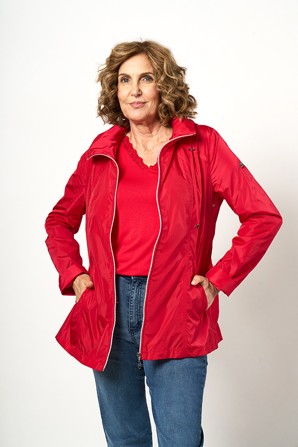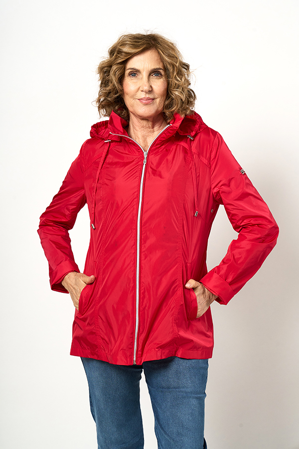 CAMPERA MALAGA. CUELLO ALTO CON CAPUCHA DESMONTABLE Y RECORTES PESPUNTEADOS, BOLSILLOS DIAGONALES CON VIVO. TEJIDO MICROFIBRA LISA.