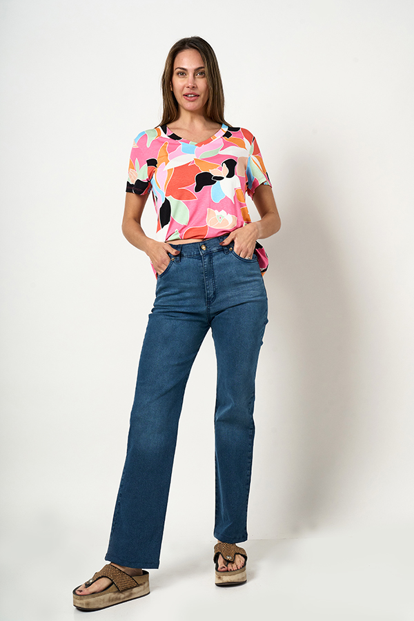 PANTALON JOSEPHINE. RECTO CON CINTURA CLASICA Y PRESILLAS, BOLSILLOS LATERALES. TEJIDO JEANS LAVADO LISO ELASTIZADO.