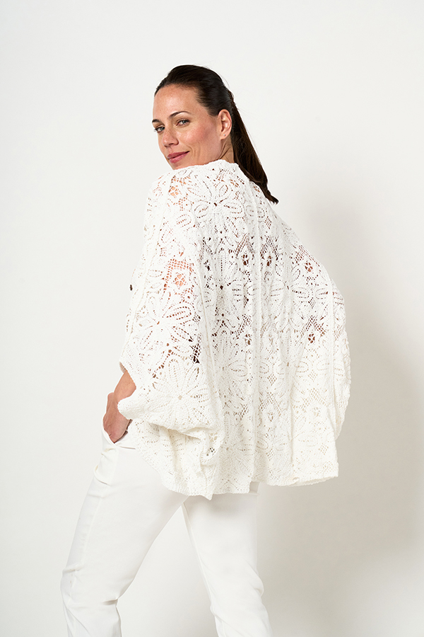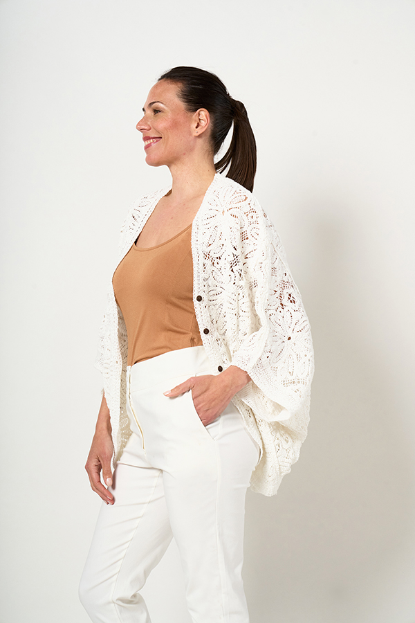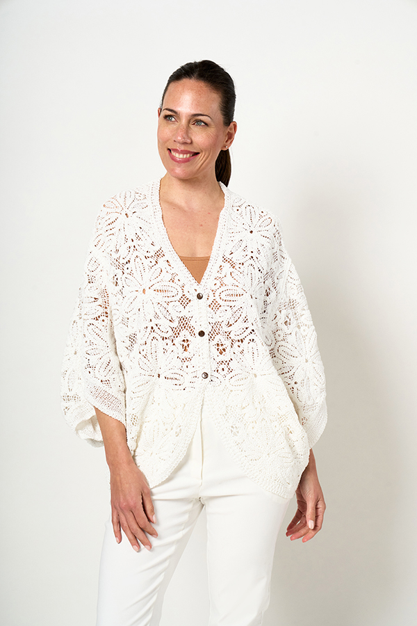 CARDIGAN ARMA. ESCOTE V CON MANGA GLOBO, OVERSIZE.TEJIDO CROCHET LISO.