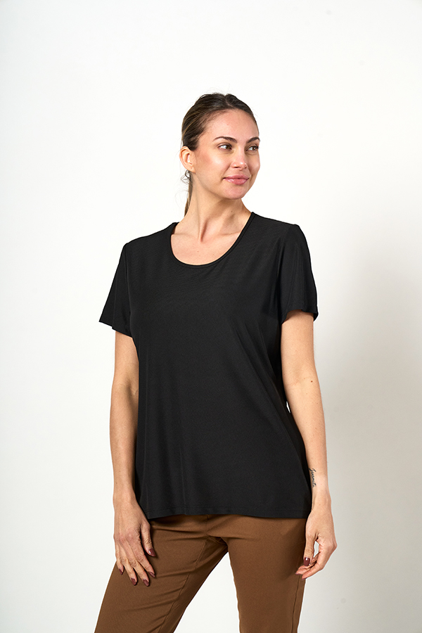 REMERA SHIRLEY CLASICA. ESCOTE BASE Y MANGA CORTA. TEJIDO MICRO MORLEY LISO.