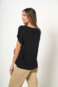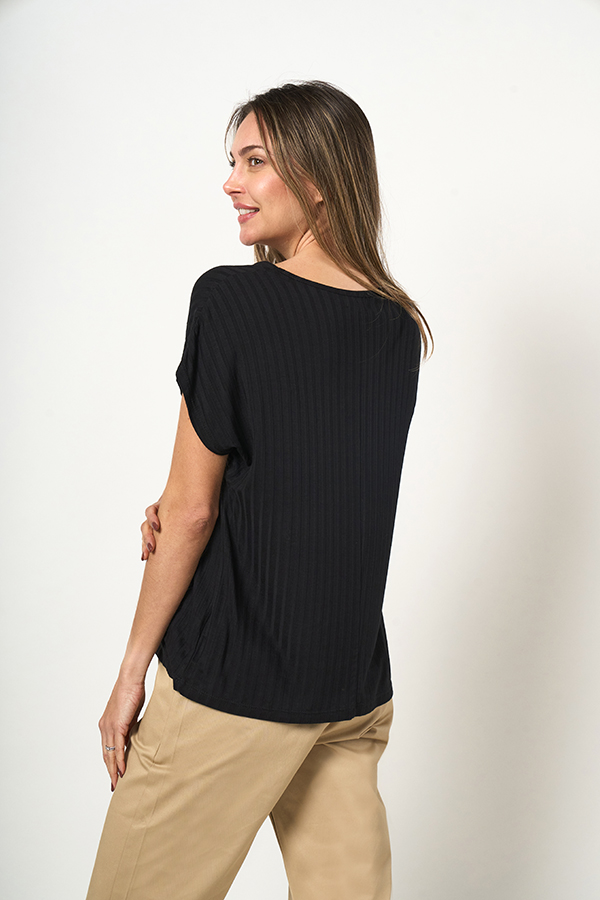 REMERA LUCY. ESCOTE BASE INCRUSTRADO MEDIA CARTERA Y MANGA JAPONESA. TEJIDO MODAL MORLEY LISO.
