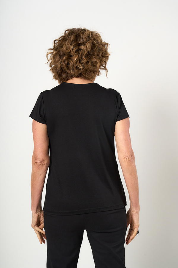 REMERA ALEXIA. ESCOTE V CON PUNTILLA Y MANGA CORTA. TEJIDO MODAL CREPE LISO.