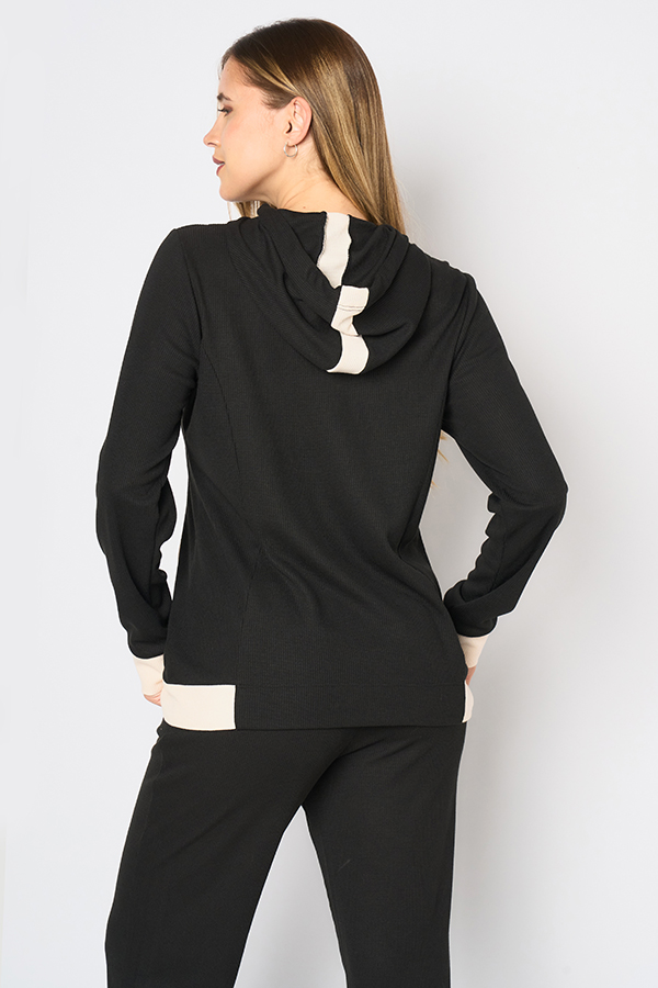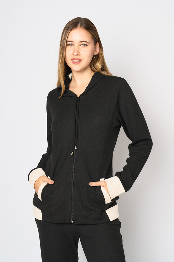 CAMPERA JOGGINS KEYLA. CON CAPUCHA Y CIERRE, MANGA LARGA Y BOLSILLO VERTICAL BICOMBINADO. TEJIDO WAFLE LISO.