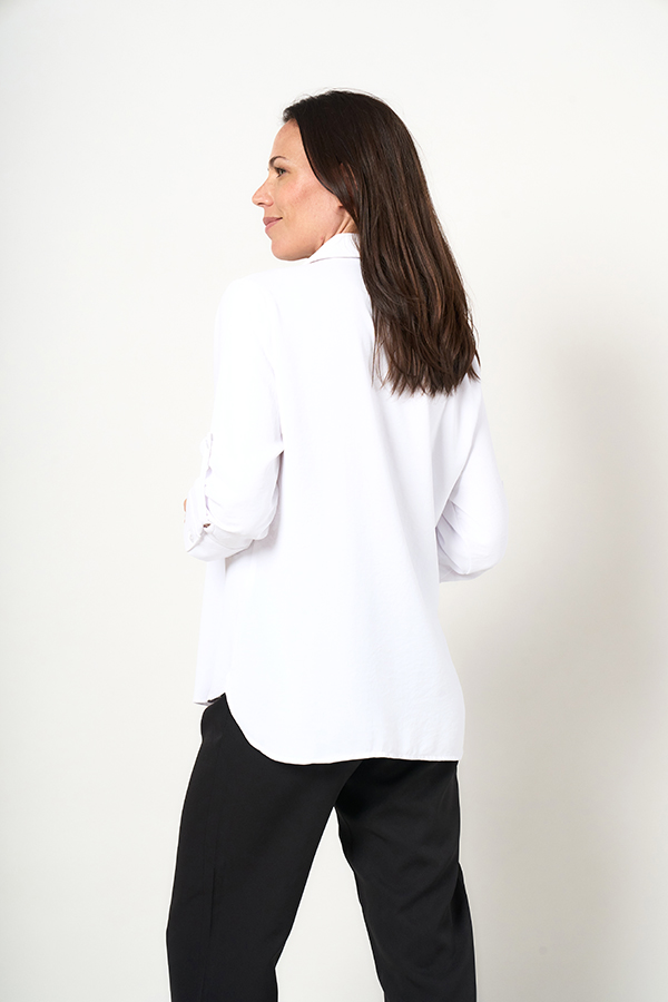 CAMISA OLIMPIA. CLASICA, CON CUELLO SOLAPA Y MANGA 3/4 CON TIRA PARA ATAR. TEJIDO CEY SATEN LISO.
