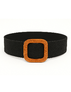 CINTO ALMA. TEJIDO RUSTICO ELASTIZADO, DETALLE HEBILLA RECTANGULAR MARMOLADA.