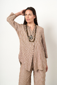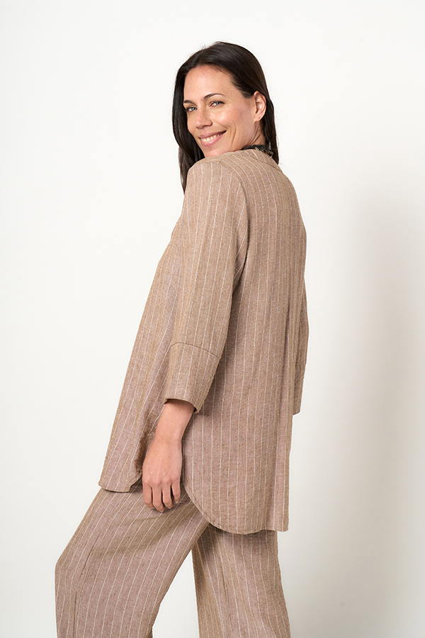CAMISOLA ERICA. CUELLO MAO CON ESCOTE INCLINADO Y MANGA 3/4 CON PUÑO. TEJIDO LINO RAYON TIZADO.