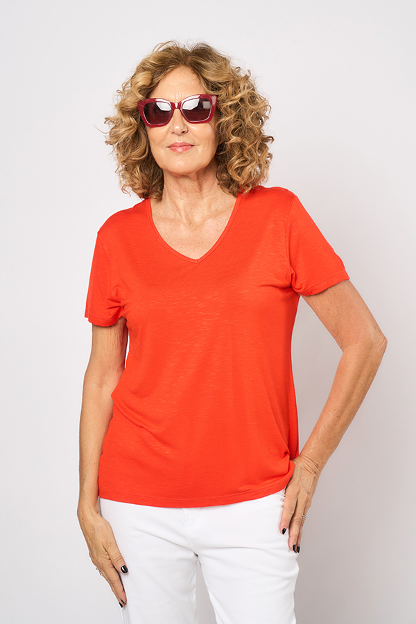 REMERA SILVANA CLASICA. ESCOTE V Y MANGA CORTA. TEJIDO MODAL FLAME LISO.