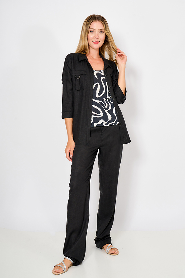 PANTALON LOURDES. CINTURA CON PRESILLAS Y BOLSILLO DIAGONAL. TEJIDO LINO BASICO LISO.