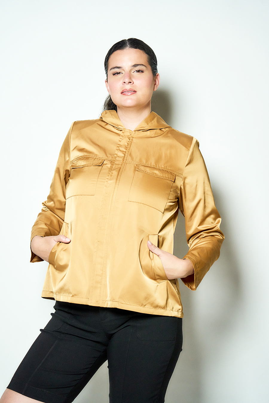 CAMPERA MORA. CON CAPUCHA, DETALLE FRENTE CON DOS BOLSILLOS TAPITA Y DOS BOLSILLOS DIAGONALES. TEJIDO PILOTERO LISO.