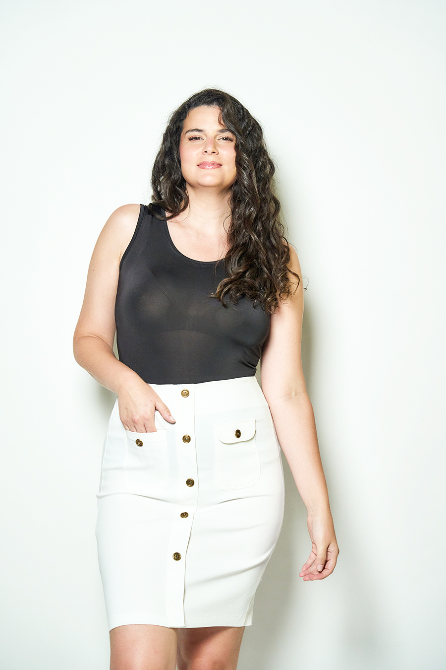 POLLERA NELLY SIN CINTURA, DETALLE FRENTE SOLAPA CON BOTONES Y BOLSILLOS CON TAPITA. TEJIDO BENGALINA LISO