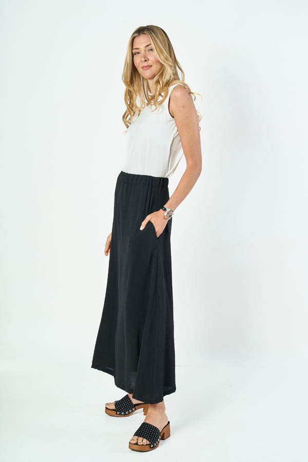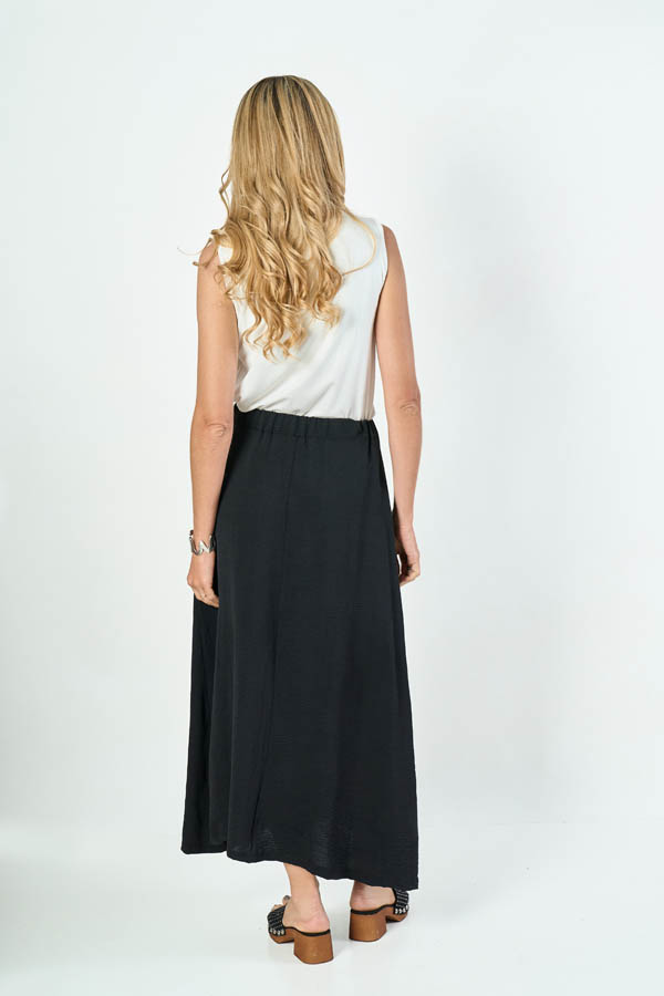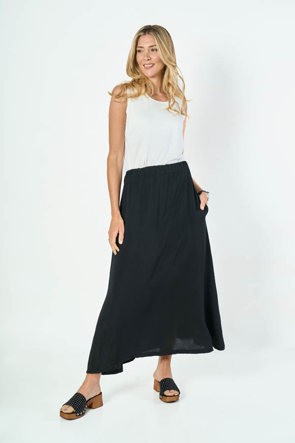 POLLERA MARGARET LARGA. CINTURA CON ELASTICO Y BOLSILLOS LATERALES. TEJIDO KENIA LISO.