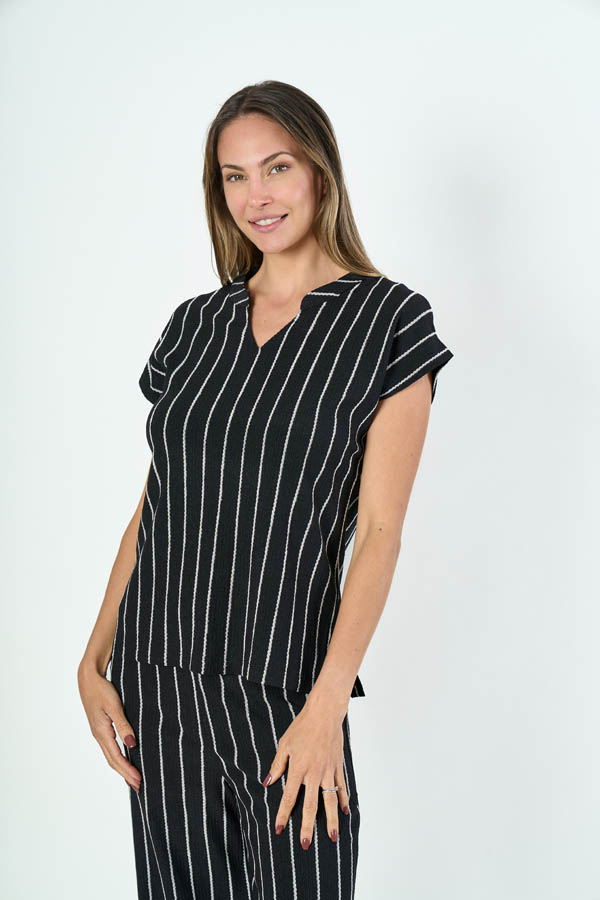 BLUSA CONSUELO. CUELLO MANGA Y MANGA JAPONESA. TEJIDO RAYADO.