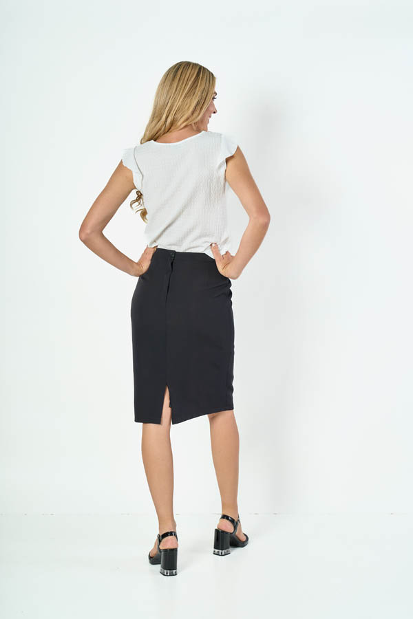 POLLERA AMY. CINTURA CLASICA, DETALLE TERMINACION CON TAJITOS. TEJIDO ZARA SASTRERO LISO.