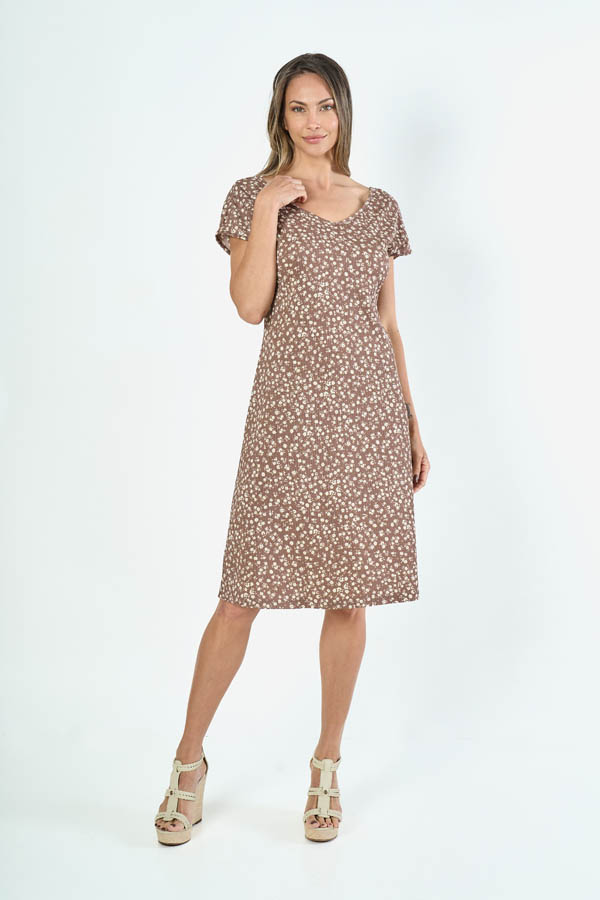 VESTIDO JULIETA. ESCOTE V Y MANGA JAPONESA, DETALLE ESPALDA EN V CON TIRITA. TEJIDO LIBERTY ESTAMPADO FLORCITAS.