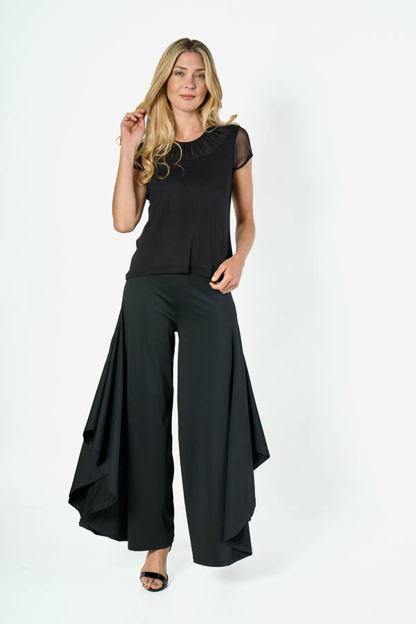 PANTALON PALAZZO DIAMELA SIMIL PLATO. CINTURA CON ELASTICO, TEJIDO MICROFIBRA LISO.