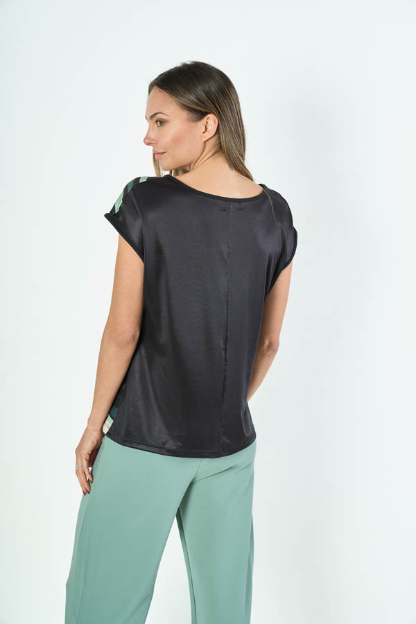 REMERA KATHERINE. ESCOTE BASE Y MANGA CAIDA, DETALLE FRENTE CON ESTAMPA. TEJIDO MICROFIBRA LISO.