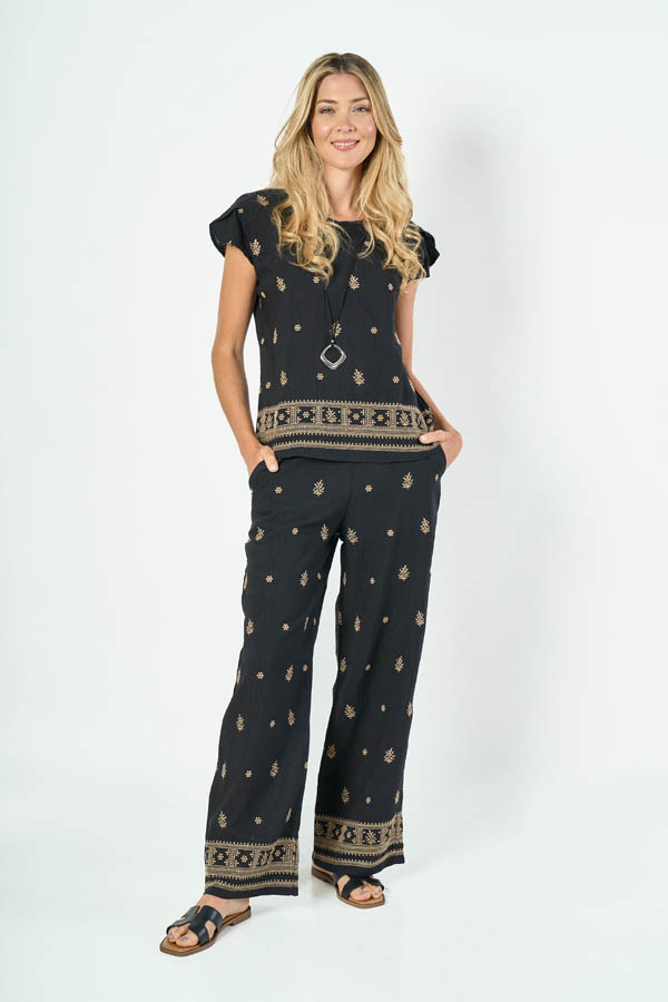 PANTALON PALAZZO ABIGAIL. CINTURA CON ELASTICO Y BOLSILLOS LATERALES.