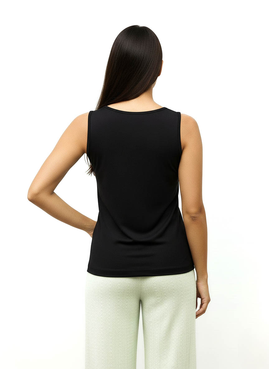 Musculosa Helena. Escote en U y volados al frente que suman movimiento y estilo. Confeccionada en modal crepé liso, con caída suave y look actual.