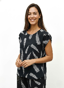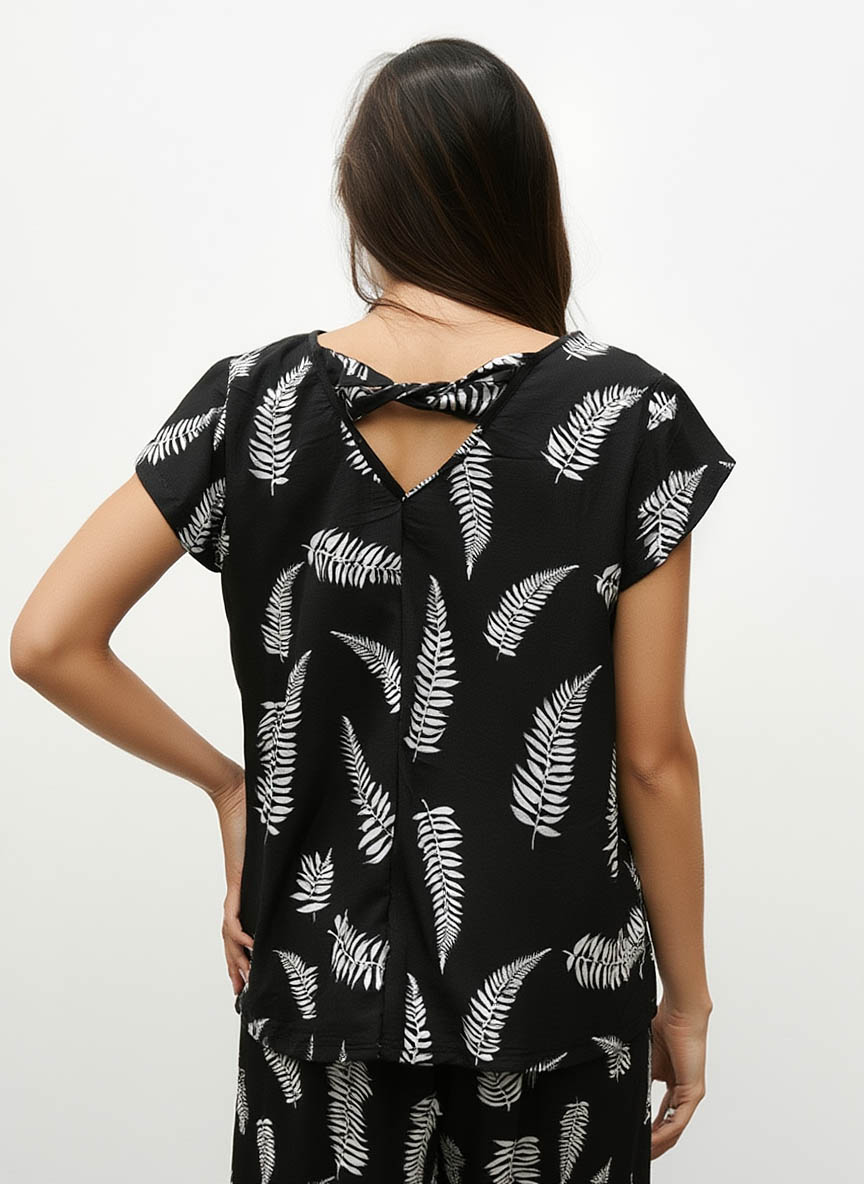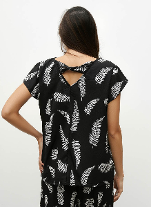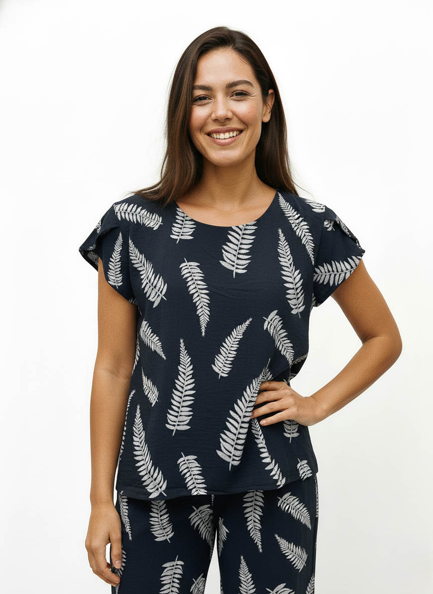 Diseño sencillo con detalles que marcan la diferencia. La Blusa Lidia presenta escote base, manga pétalo y un sutil nudo en la espalda que aporta interés sin perder elegancia. Confeccionada en tejido Cey estampado espigas, ligero y fluido.