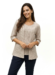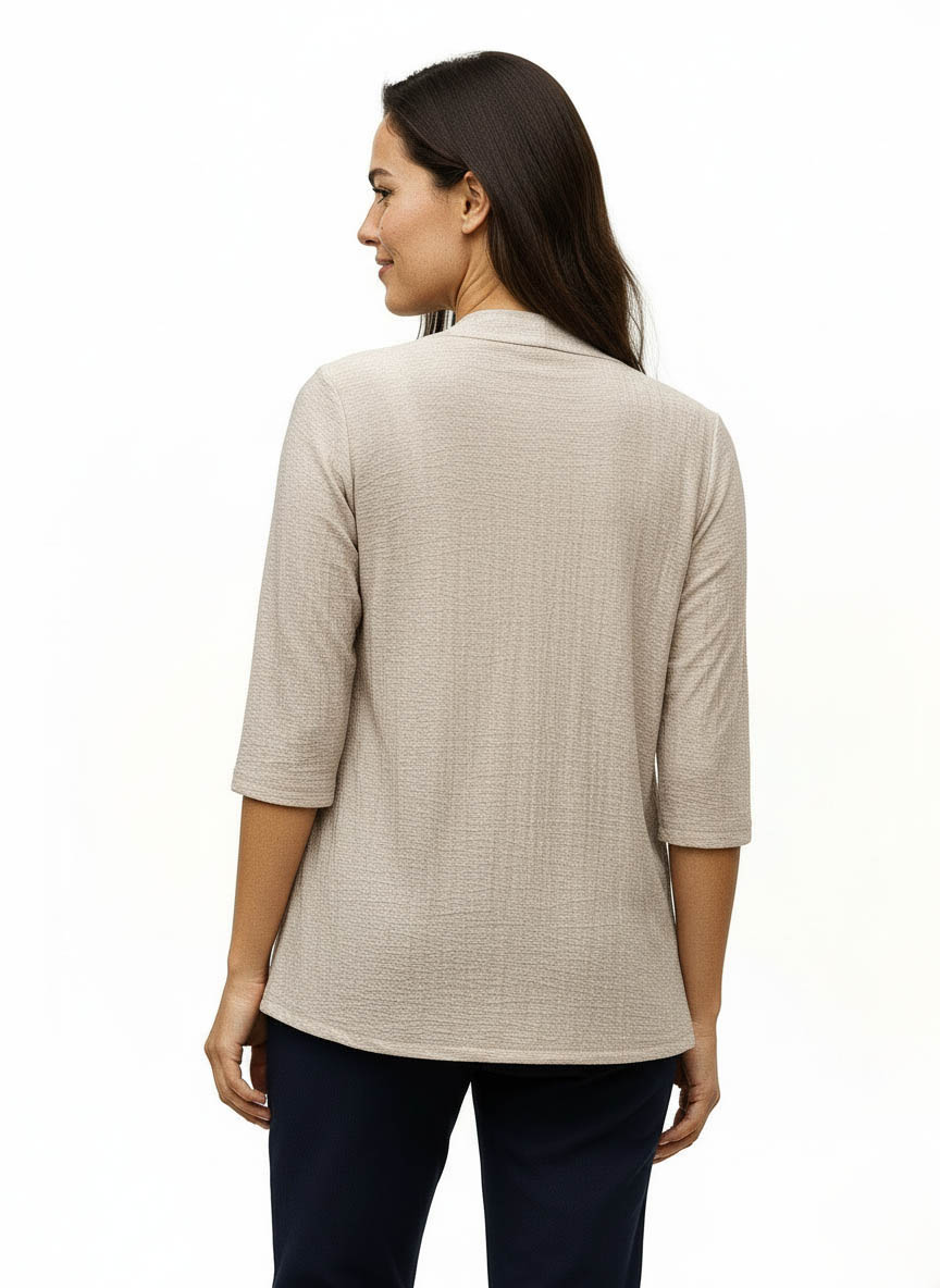 Remera Simula Spolverino Aldana . Escote base y manga 3/4, con detalle frontal de vista pespunteada que aporta definición. Confeccionada en tejido esfumado, ligera y con estilo actual.