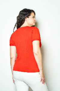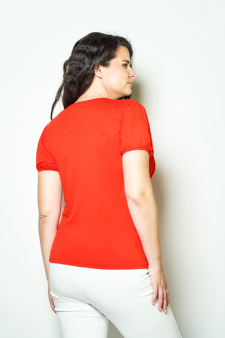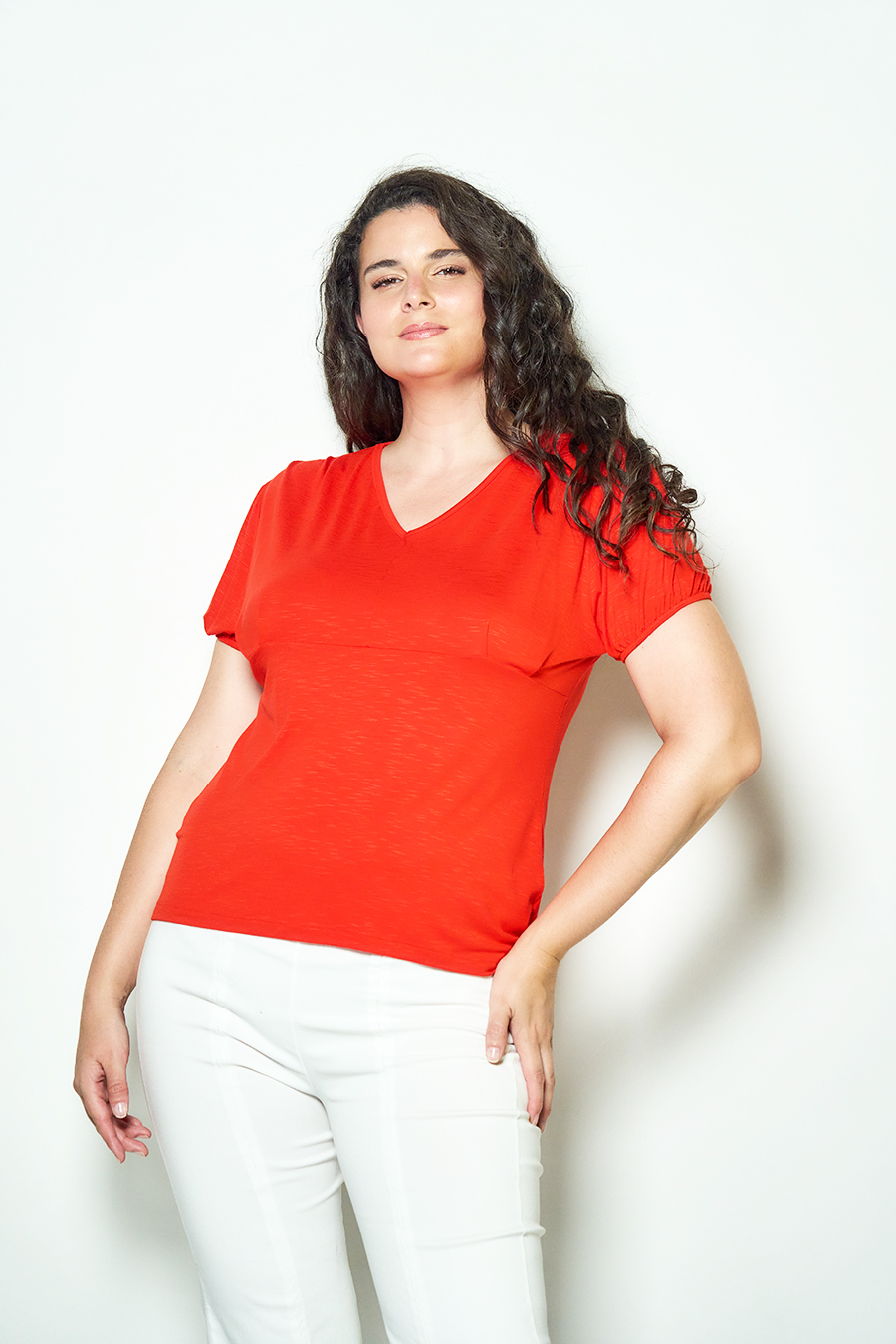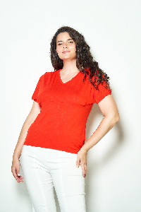 129 REMERA ROMINA. ESCOTE V Y MANGA PRINCESA, DETALLE HOMBROS CON PINZAS. TEJIDO MODAL FLAME LISO.