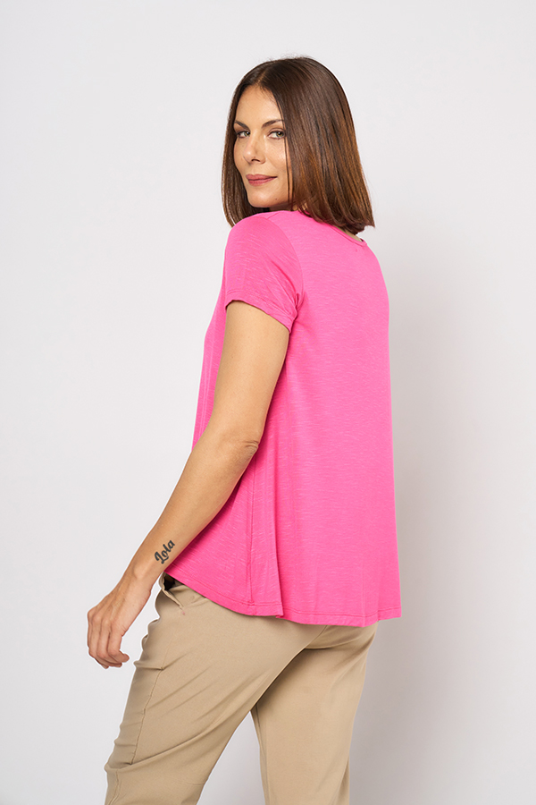 111 REMERA ANABEL. ESCOTE BASE Y MANGA CORTA CON TERMINACION EVASE. TEJIDO MODAL FLAME LISO.