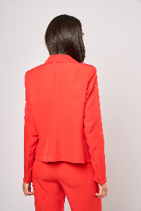 113 BLAZER LOLA. CUELLO SOLAPA Y MANGA LARGA, FRENTE CON RECORTE ENTALLADO, DOS BOTONES Y BOLSILLOS OJAL, DETALLE TERMINACION IREEGULAR. TEJIDO CREPE WAY LISO.