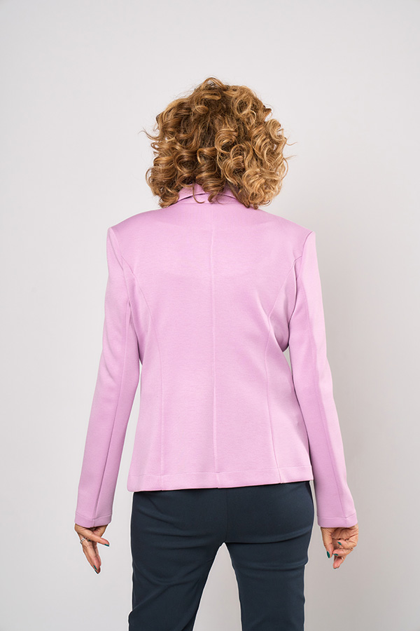 85 BLAZER FILOMENA. CUELLO SOLAPA Y MANGA LARGA, DETALLE RECORTE ENTALLADO, SIMULA BOLSILOS OJAL. TEJIDO JERSEY SCUBA LISO.