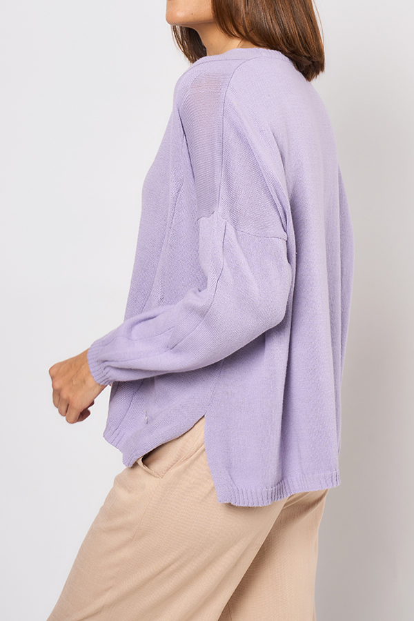 SWEATER OVERSIZE INDIA. ESCOTE V Y MANGA LARGA, DETALLE FRENTE RELIEVE OCHO Y ROMBOS. TEJIDO DE PUNTO LISO.