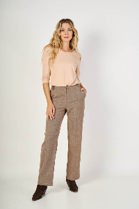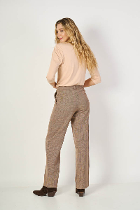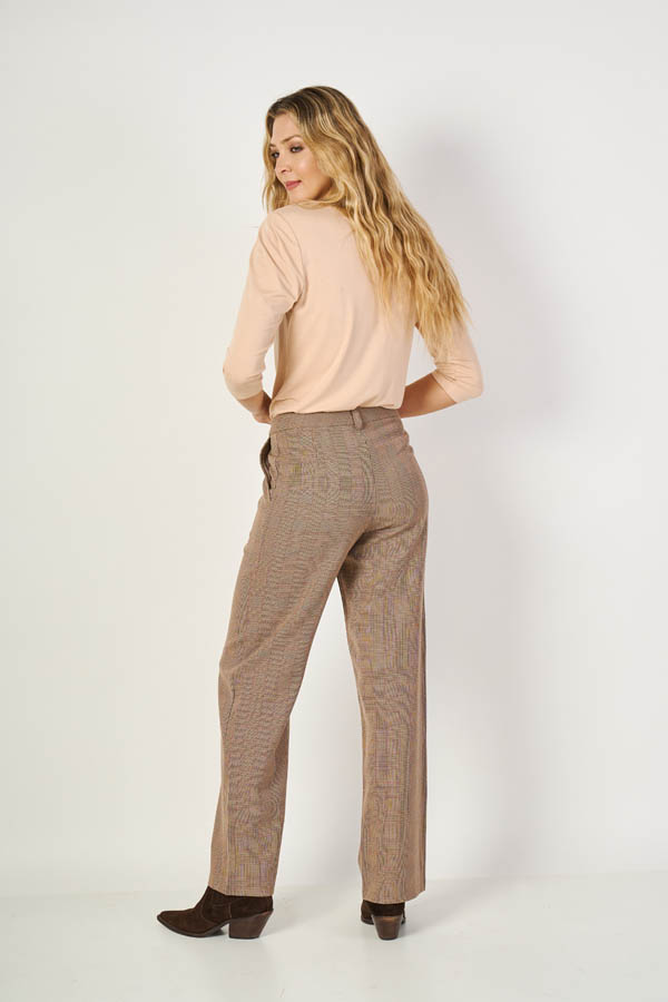 Pantalón Magnolia , clásico y moderno. Cintura cambrada con presillas y bolsillos diagonales que estilizan. Confeccionado en sarga estampada Príncipe de Gales. Podés usarlo solo o armar conjunto con el Blazer Nieves para un look tipo traje, elegante.