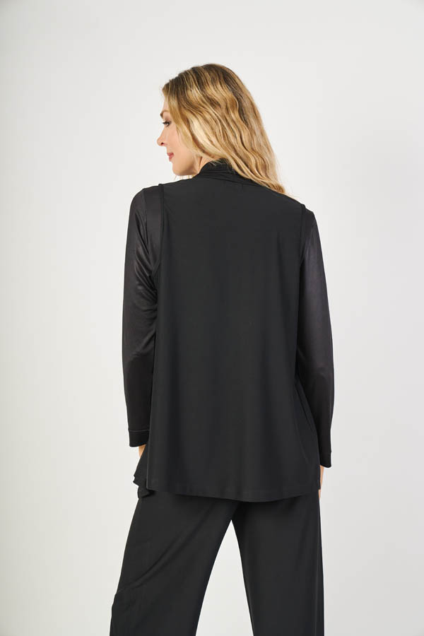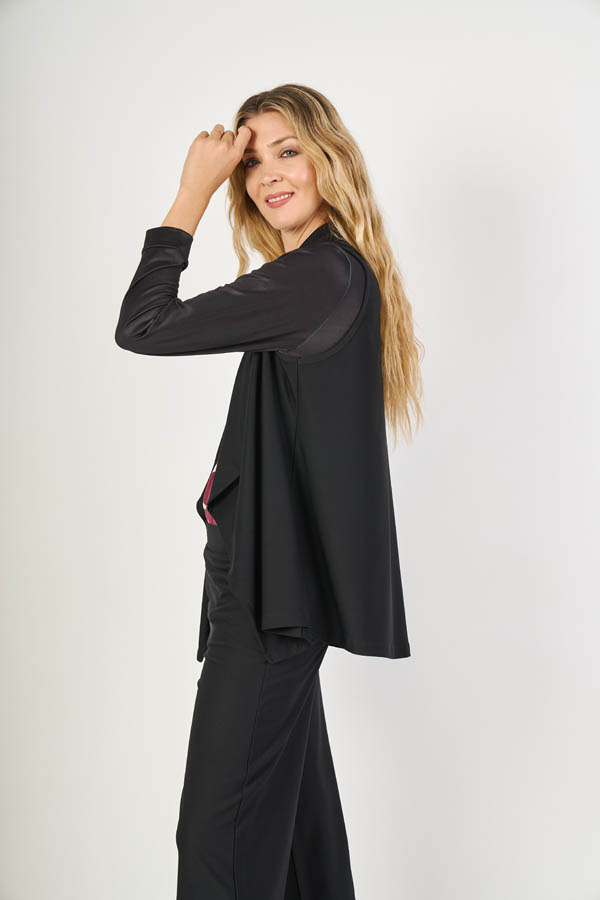 Chaleco Samira , elegante y moderno. Diseño sin mangas con cuello smoking que aporta un toque sofisticado. Confeccionado en jolly twill liso, con buena estructura y caída, ideal para sumar estilo a cualquier look, de día o de noche.