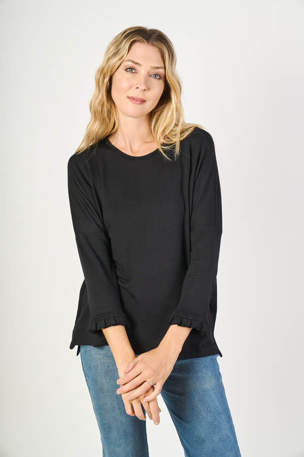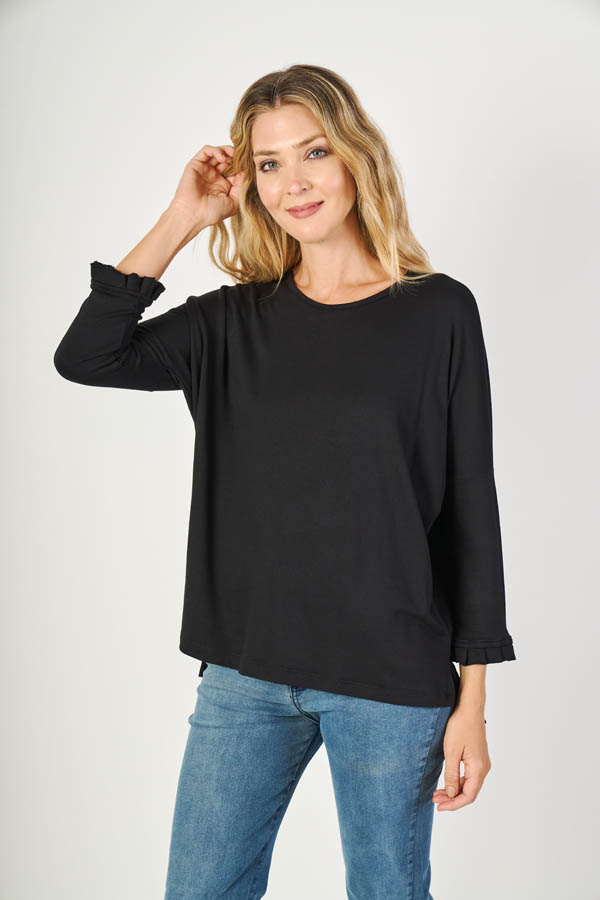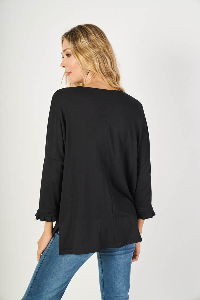 Remera Natalia , fresca y femenina. Escote en U y manga caída, con detalle de puño con voladitos que suma un toque delicado. Confeccionada en modal rústico liso, suave y liviano, ideal para un look cómodo con estilo todos los días.