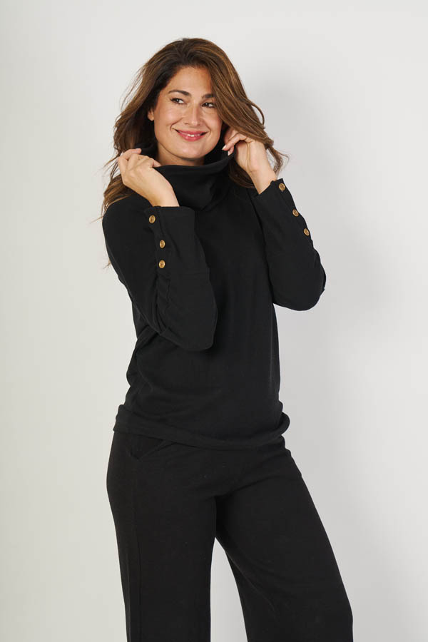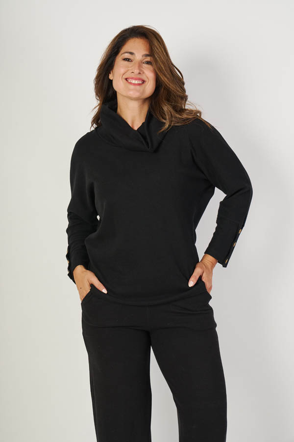 Polerón Sofía , abrigo con estilo. Cuello volcado y manga dolman para un look relajado y moderno, con detalle de puños con presillas que suman diseño. Confeccionado en lanilla angora, suave y calentita, ideal para los días fríos sin perder onda.